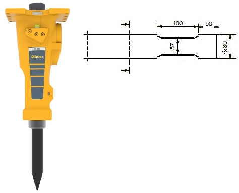 Compatible with Atlas Copco models SB 52 / SB 55. The cutting edge of the chisel is cross to driving direction of the excavator, with the exception of the Asphalt cutter, this one stands parallel to driving direction of the excavator.