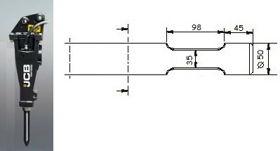 Chisels for JCB HAMMERMASTER Hydraulic hammer, Compatible with JCB models HM 165 Q / HM 166 Q. The cutting edge of the chisel is cross to driving direction of the excavator, with the exception of the Asphalt cutter, this one stands parallel to driving direction of the excavator. Shank tools: