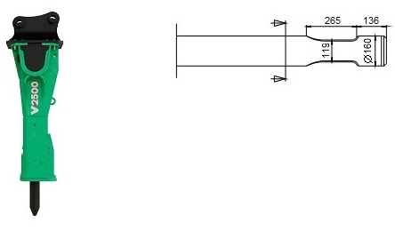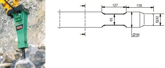 Chisels for hydraulic hammer MONTABERT SD 16. The Montabert SC16 and SD16 are virtually identical in specifications and performance, but the SD16 is the modern successor (upgrade) to the SC16 series. Perfect for demolition and excavation work. The chisels for the SC16 and SD16 are often interchangeable due to their similar dimensions (Ø55mm tool diameter).